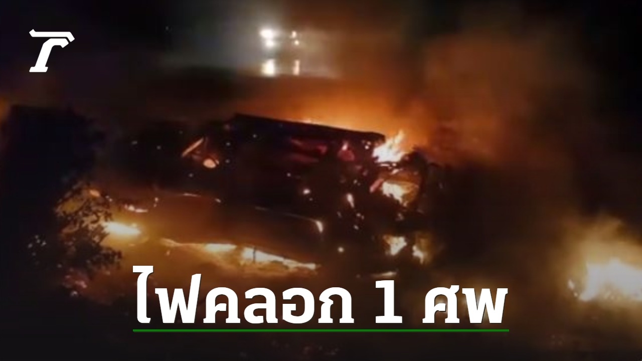เก๋งซิ่งฝ่าฝน เสียหลักตกร่องกลางถนน พลิกคว่ำหลายตลบ ไฟลุก-ระเบิดตูมลามวอดท่วมคัน คลอกคนขับดับคาซาก ตร.คาดผู้ตายขับมาเร็ว เจอฝนตก-ถนนลื่นด้วย