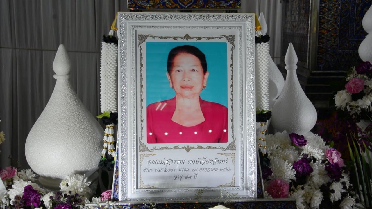 ที่ศาลา ญาติพี่น้องและเพื่อนบ้านได้ร่วมกันทำบุญเลี้ยงพระ อุทิศส่วนกุศลให้แก่ผู้เสียชีวิต คือ นางสุวรรณ หงษ์เวียงจันทร์ อายุ 79 ปี เสียชีวิตเมื่อวันที่ 18 ก.ค. ที่ผ่านมา ต่อมา นายอ่อน หงษ์เวียงจันทร์ อายุ 86 ปี สามีของนางสุวรรณ ได้เสียชีวิตตามภรรยา ในวันที่ 21 ก.ค. เวลา 18.00 น. ซึ่งสร้างความเสียใจให้แก่บุตรหลาน แต่ทั้งคู่เป็นคู่สามีภรรยาที่อยู่กินกันมาร่วม 60 ปี มีลูกชายรวม 3 คน และ มาเสียชีวิตในเวลาใกล้เคียงกัน เหมือนทั้งคู่จะไม่ยอมพรากจากกันไปไหน