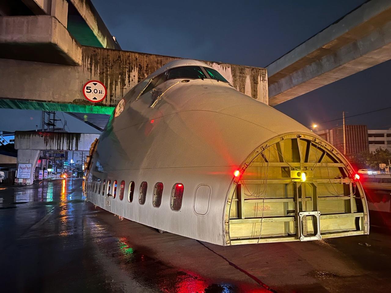 ต่อมา หลังจากรถเครนยกโครงลำตัวเครื่องบินขยับและปรับให้ต่ำลงเล็กน้อยและขบวนรถบรรทุกพ่วง 5 คันสามารถเดินทางต่อไปได้ จากการสอบถามข้อมูลทราบว่าชิ้นส่วนของเครื่องบินทั้งหมดใช้รถบรรทุกพ่วงจำนวน 12 คัน ต้นทางมาจาก จ.ระยอง ปลายทางไปส่งในพื้นที่ อ.ปราณบุรี จ.ประจวบคีรีขันธ์ ทราบว่าเจ้าของจะนำไปประกอบไว้โชว์ในพื้นที่ส่วนตัว ซึ่งการขนย้ายครั้งนี้ รถ 7 คันแรกสามารถผ่านไปได้แต่มีปัญหากับคันที่บรรทุกชิ้นส่วนของโครงลำตัวเครื่องบิน ซึ่งสูงเกินไปเพียงเล็กน้อยเท่านั้น โดยเหตุการณ์นี้ใช้เวลาประมาณ 1 ชั่วโมงจึงสามารถแก้ปัญหา และเดินทางต่อไปได้