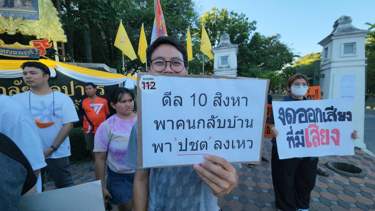 นายสมยศ พฤกษาเกษมสุข อายุ 60 ปี กลุ่ม 24 มิถุนา ประชาธิปไตย เปิดเผยว่า ในวันนี้เดินทางมาจาก กทม. เพื่อมาสังเกตการณ์ และดูความเคลื่อนไหวในการขับไล่สว. ว่าได้กระจายตัวไปยังจังหวัดต่างๆ อย่างไร นี่คือจุดเริ่มต้นของนักศึกษามหาวิทยาลัยศิลปากร กับบรรดาสมาชิกด้อมส้ม ที่ได้มารวมชุมนุมถือป้ายด้านหน้ามหาวิทยาลัย