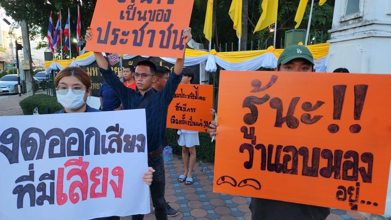 นักศึกษา ประชาชนออกมาร่วมชุมนุมหน้า ม.ศิลปากร นครปฐม เรียกร้อง สว.ลาออก เพื่อให้การจัดตั้งรัฐบาลเป็นไปตามแนวทางประชาธิปไตย ไม่ใช่ให้คนส่วนน้อยมากำหนด พร้อมเชิญร่วมชุมนุมใหญ่ที่แยกราชประสงค์พรุ่งนี้