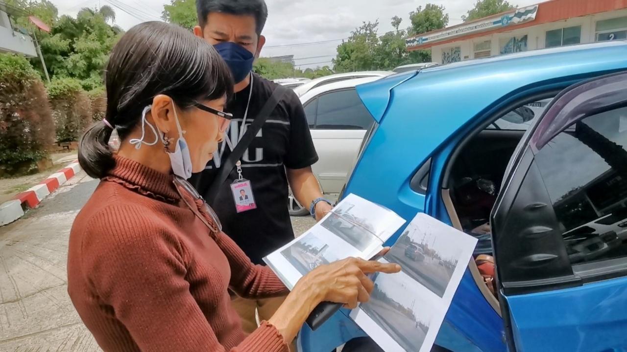 เมื่อวันที่ 7 ส.ค. 66 ผู้สื่อข่าวรายงานว่า มีผู้หญิงสูงอายุคนหนึ่ง ใส่เสื้อแขนยาวสีน้ำตาล นุ่งกางเกงขายาวสีน้ำตาลเข้ม สวมแว่นตา ขับรถเก๋งฮอนด้า รุ่นบริโอ้ สีน้ำเงิน ทะเบียน กรุงเทพมหานคร เข้ามาที่ สภ.บางบัวทอง จ.นนทบุรี ซึ่งรถคันดังกล่าวมีสภาพเสียหาย ประตูหน้าและหลังด้านขวาบุบ และกระจกหน้ารถด้านซ้ายมีรอยขีดข่วน