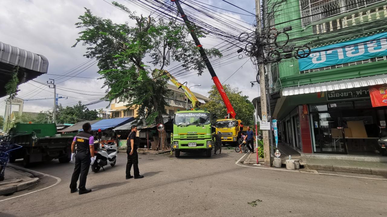 นางกาญจนา เจริญนนทสิทธิ์ นายกเทศมนตรีเมืองบางบัวทอง กล่าวว่า เช้าวันนี้ได้เร่งประชุมทีมผู้บริหารและหัวหน้าส่วนราชการเป็นกรณีเร่งด่วน เพื่อเข้าแก้ไขปัญหาให้กับประชาชนโดยเร็วที่สุด เบื้องต้นจะนำถุงยังชีพไปมอบให้ ประชาชนที่ได้รับผลกระทบ ซึ่งได้สั่งการให้เจ้าหน้าที่ลงสำรวจความเสียหาย และเข้าแก้ไขช่วยเหลืออย่างเร่งด่วน ตอนนี้ยังไม่ทราบในพื้นที่บ้านเรือนเสียหายกี่ครัวเรือน นอกจากนี้เทศบาลเองห้องประชุมชั้น 5 ก็ได้รับความเสียหายหนัก ตลาดสด วัดละหาร หลังคาแตกทะลุ หลังคาหล่นทับรถยนต์ ต้นไม้หักโค่นทับรถบัส กองช่างเทศบาลเมืองบางบัวทอง ได้ส่งเจ้าหน้าที่เข้าเคลียร์พื้นที่ไปบ้างแล้ว โดยตัดต้นไม้และที่กีดขวางกลางถนนหนทางให้เรียบร้อยให้ประชาชนใช้สัญจรได้ และช่วงบ่ายจะลงพื้นที่แจกถุงยังชีพให้กับผู้ที่เดือดร้อนในเบื้องต้น
