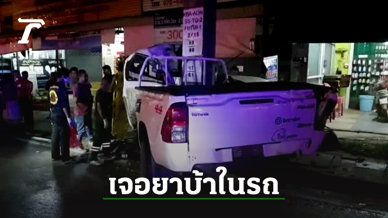 รถกระบะเสียหลัก ฟาดเสาไฟฟ้าข้างทางถนนเพชรเกษม ที่ อ.เหนือคลอง จ.กระบี่ คนขับเสียชีวิตคารถ บาดเจ็บสาหัสอีก 1 ตรวจในรถพบยาบ้า 1 ซอง ยังไม่รู้ของใคร