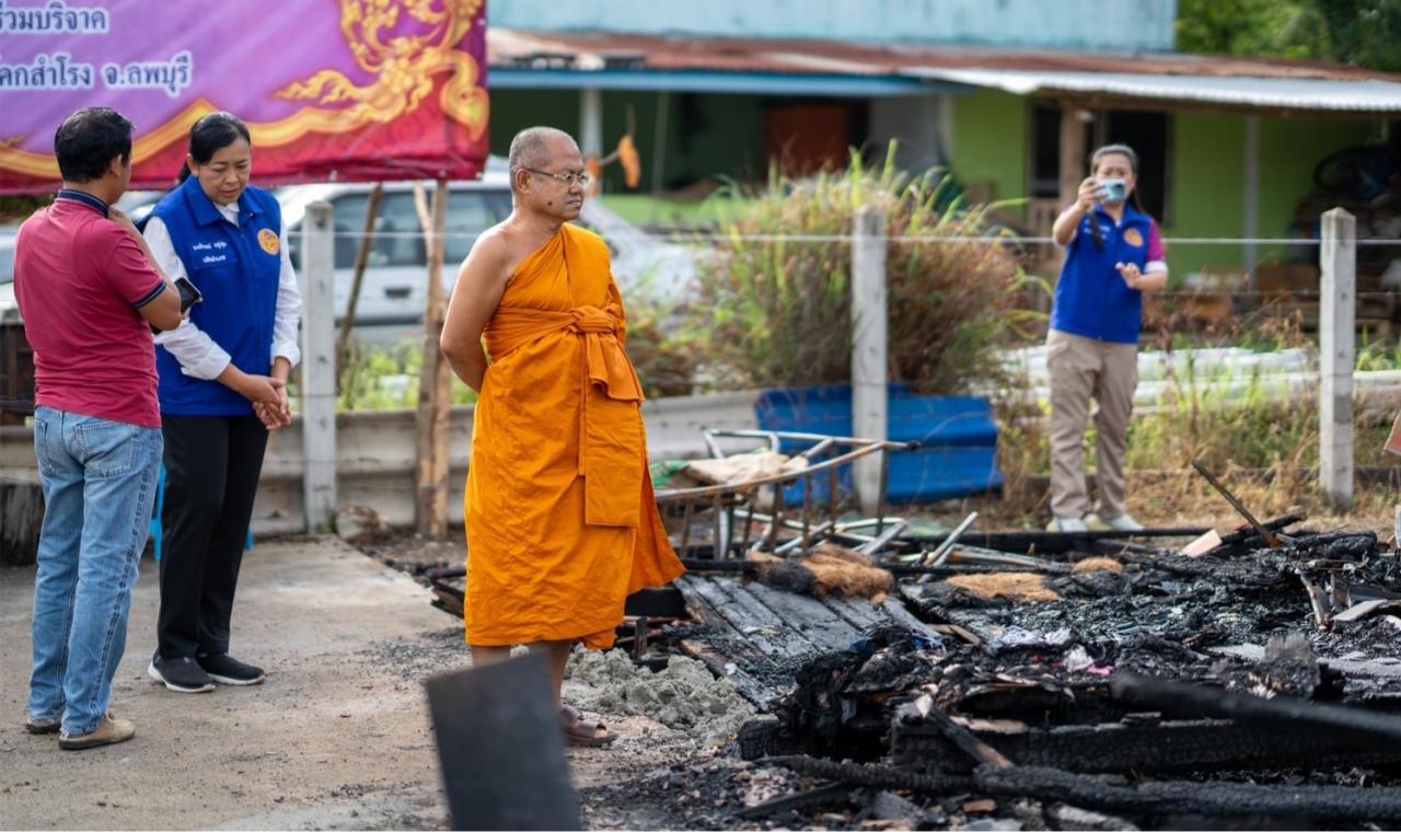 ล่าสุด พระเทพเสนาบดี เจ้าคณะจังหวัดลพบุรี พร้อมด้วยคณะสงฆ์และส่วนราชการ ได้ร่วมกันลงพื้นที่เพื่อเข้าไปตรวจสอบ และทำการรื้อถอนซากปรักหักพังบ้านที่ถูกเพลิงไหม้จนได้รับความเสียหาย โดยการรื้อถอนได้รับความอนุเคราะห์จากจิตอาสานักเรียน จากโรงเรียนวินิตศึกษาในพระราชูปถัมภ์ จังหวัดลพบุรี จำนวน 60 คน มาร่วมกันขนย้ายเศษซากออกจากพื้นที่ เพื่อเคลียร์พื้นที่เตรียมการวางผังและลงวางเสาเข็มเพื่อสร้างบ้านพักอาศัยใหม่ ให้กับผู้ที่ได้รับความเดือดร้อนจากการเกิดอัคคีภัยในครั้งนี้