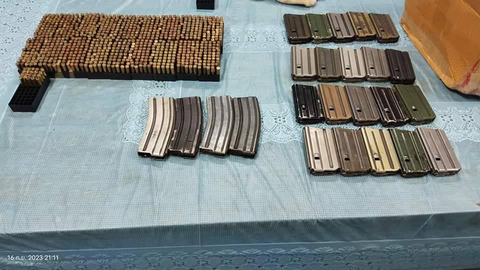 จากการแกะกล่องออกมาดู พบปลอกกระสุนปืน ขนาด 5.56 มม. บรรจุในกล่อง 50 นัด จำนวน 18 กล่อง บรรจุในกล่อง 20 นัด จำนวน 1 กล่อง รวมปลอกกระสุนทั้งหมด จำนวน 920 นัด นอกจากนี้ยังพบแมกกาซีน M-16 A1 บรรจุกระสุน 20 นัด จำนวน 20 อัน และบรรจุ 30 นัด จำนวน 4 อัน โดยปลอกกระสุนปืนที่พบทั้งหมดเป็นปลอกกระสุนเปล่า