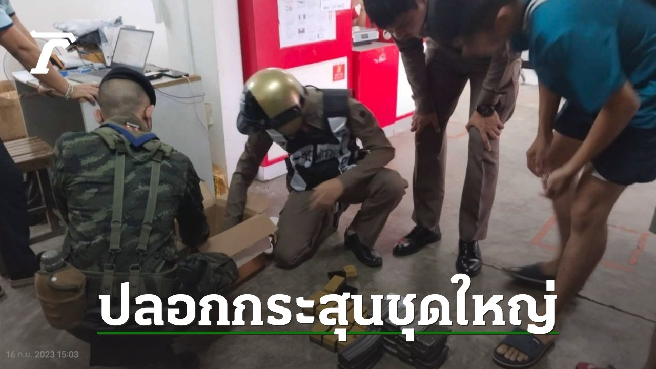 เมื่อเวลา 15.00 น. วันที่ 17 ก.ย. 66 ศูนย์วิทยุ สภ.สังขละบุรี จ.กาญจนบุรี ได้รับแจ้งจากพนักงานบริษัทขนส่งพัสดุเอกชนชื่อดังแห่งหนึ่งว่า พบกล่องพัสดุมีรอยฉีกขาด สามารถมองเห็นด้านใน โดยพัสดุที่อยู่ด้านในมีลักษณะคล้ายเครื่องกระสุนปืน M-16 หลังรับแจ้ง เจ้าหน้าที่ศูนย์วิทยุ สภ.สังขละบุรี จึงรายงานไปยัง พ.ต.อ.ไพฑูรย์ ศรีวิลัย ผกก.สภ.สังขละบุรี พ.ต.ท.อำนวย ศรีสงคราม รอง ผกก.สส.สภ.สังขละบุรี พ.ต.ต.วิโรจน์ ชาวบ้านกร่าง สว.สส. สภ.สังขละบุรี พ.ต.ต.ประหยัด ราษี สวป.สภ.สังขละบุรี ทราบ