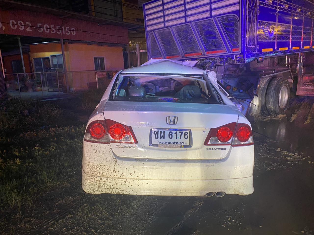 เมื่อเวลา 01.00 น. วันที่ 05 ต.ค. 66 พ.ต.ต.ภัสส์กร เฉลียวบุญ สารวัตรสอบสวน สภ.เมืองฉะเชิงเทรา ได้รับแจ้งมีอุบัติเหตุรถเก๋งชนท้ายรถบรรทุก 18 ล้อ มีผู้เสียชีวิตติดอยู่ภายในซากรถ จึงเดินทางไปตรวจสอบที่เกิดเหตุรวมกับหน่วยกู้ภัยฉะเชิงเทรา และแพทย์นิติเวช รพ.พุทธโสธร จุดเกิดเหตุบนถนน 304 ก่อนถึงปั๊ม ปตท.บางไผ่ มุ่งหน้า อ.บางคล้า พื้นที่ ต.บางไผ่ อ.เมืองฉะเชิงเทรา จ.ฉะเชิงเทรา พบรถเก๋งฮอนด้า ซีวิค สีขาว หมายเลขทะเบียน ชผ 6176 กทม. ลักษณะพุ่งชนท้ายรถพ่วง ยี่ห้อฮีโน หมายเลขทะเบียน 69-2642 กรุงเทพมหานคร อย่างเต็มแรงทำให้ห้องโดยสารถูกบีบอัด ด้านในรถเก๋งพบว่าผู้เสียชีวิตคือ พ.ต.ทัศนัย อินลี นายทหารสังกัด พล.ร.11 อายุ 36 ปี เสียชีวิต ลักษณะนั่งถูกพวงมาลัยและคอนโซลกดทับร่างผู้เสียชีวิต