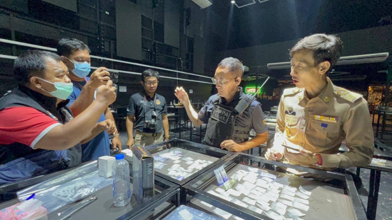 ด้านนายรณรงค์ ทิพย์ศิริ ผู้ตรวจราชการกรมการปกครอง กล่าวว่า มีประชาชนได้ร้องเรียนผ่านศูนย์ดำรงธรรมการทรวงมหาดไทย ว่ามีผับเปิด และไม่มีใบอนุญาตและปล่อยให้มีการใช้ยาเสพติดในผับเยอะมาก ซึ่งเมื่อเรามาตรวจสอบก็พบว่ามียาเสพติดจริงอย่างที่ได้รับร้องเรียนมา 1.สถานที่แห่งนี้ไม่มีใบอนุญาตในการตั้งสถานที่ หรือเป็นสถานบันเทิงเถื่อน นอกจากนี้ยังมีการเปิดให้บริการดึกมากขายเกินกว่าที่กฎหมายกำหนด และการปล่อยปละละเลยให้มีการเสพยาเสพติด ซึ่งทางสายของเราเมื่อเข้ามาเห็นว่าแรกๆ ก็จะเสพกันในห้องน้ำ และเมื่อดึกก็จะเสพกันที่โต๊ะเลย อย่างที่เห็นเรายึดยาเสพติดได้เยอะมาก โดยวันนี้เราร่วมบูรณาการกับเจ้าหน้าที่ ป.ป.ส.ภาค 1 ซึ่งมาทั้ง ยาไอซ์ เคตามีน แฮปปี้วอเทอร์ ซึ่งทาง ป.ป.ส.แจ้งว่าแฮปปี้วอเทอร์นั้นเป็นยาเสพติดที่อันตรายมาก เพราะมีตัวยาเสพติดหลายชนิดผสมอยู่ ทั้งกระตุ้นประสาท ซึ่งสถานที่ที่เพิ่งย้ายมาจากที่มีเรื่องยิงกันเสียชีวิต เลยย้ายมาอยู่ที่แห่งนี้ ยังพบอาวุธปืนพร้อมใช้แบลงค์กันดัดแปลง และเครื่องกระสุนอยู่ในตัวของการ์ดด้วย.