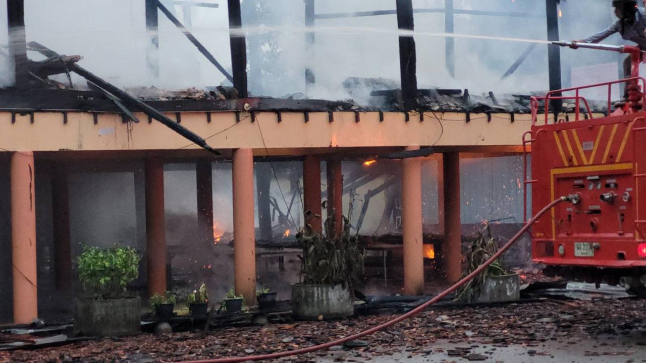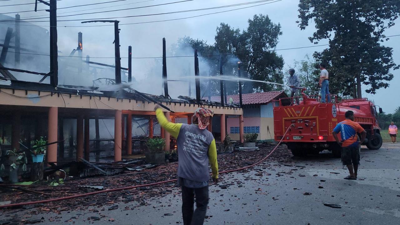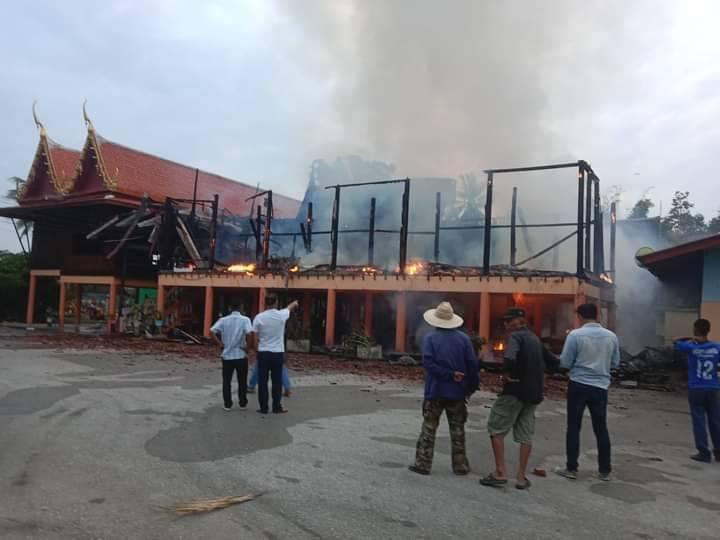 ต่อมาเมื่อรถดับเพลิงจำนวน 4 คัน เร่งช่วยกันดับเพลิงที่กำลังลุกไหม้ศาลา โดยใช้เวลากว่า 2 ชั่วโมง จึงสามารถควบคุมเพลิงได้โดยไม่มีใครได้รับบาดเจ็บ ส่วนสาเหตุคาดว่าน่าจะมาจากไฟฟ้าลัดวรจร อย่างไรก็ตามต้องรอพิสูจน์หลักฐานจังหวัดเข้าตรวจสอบหาสาเหตุ และค่าความเสียหายอย่างละเอียดอีกครั้งต่อไป.
