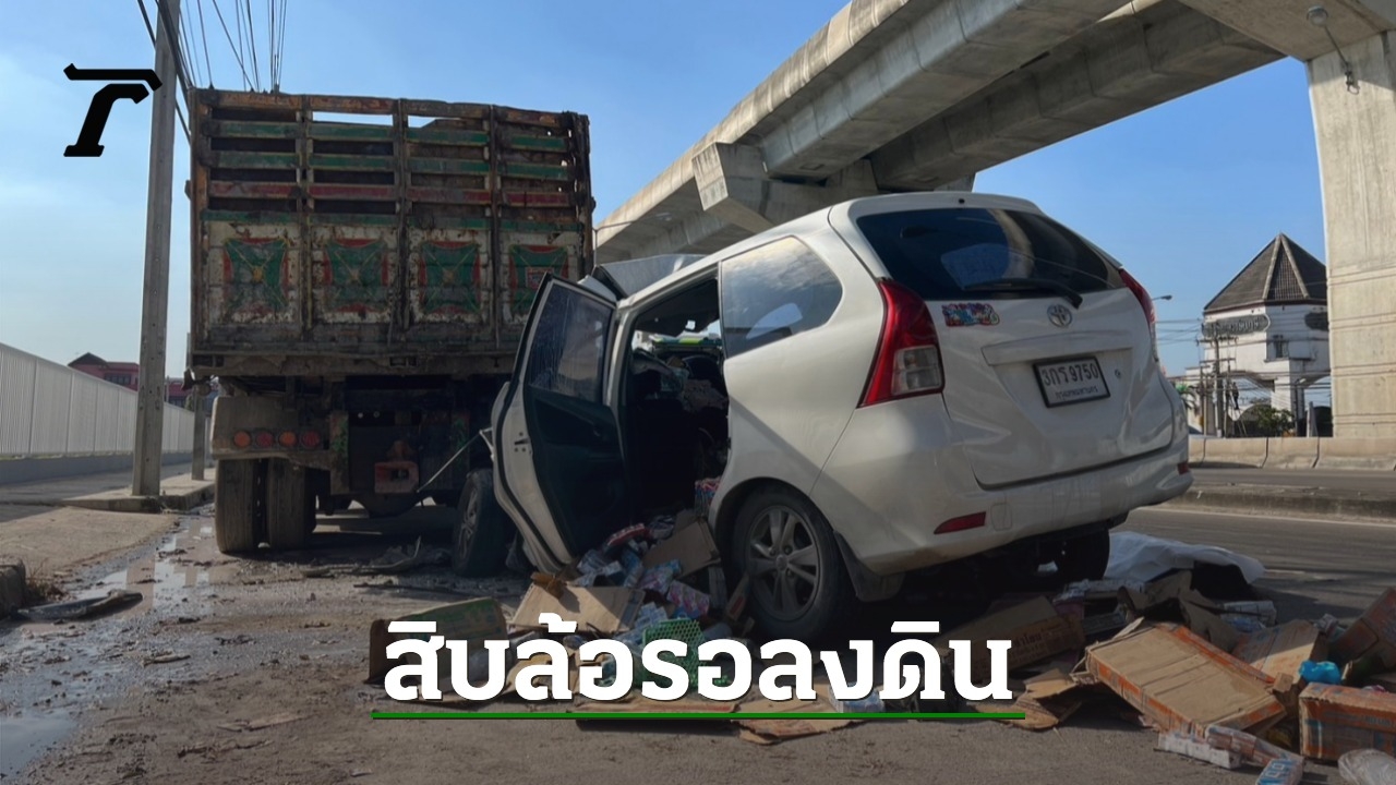 สองสาวพนักงานรถส่งนม ขับรถเก๋งชนท้ายรถบรรทุกดิน จอดรอลงดินอยู่ใต้สถานีรถไฟฟ้าบางรักใหญ่ ถนนรัตนาธิเบศร์ อ.บางบัวทอง จ.นนทบุรี เสียชีวิต 2 ศพ
