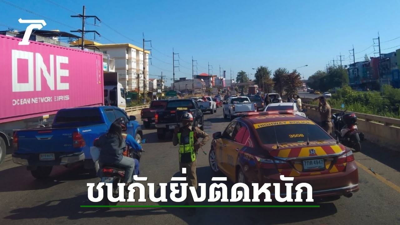 ถนน 304 ช่วงคลองรั้ง ปราจีนบุรี เกิดอุบัติเหตุในวันที่ประชาชนเดินทางกลับบ้านเทศกาลปีใหม่ รถชนกัน 4 คัน ทำรถติดยาวมากกว่า 10 กิโลเมตร ตำรวจสั่งยกลงข้างทาง เตือนรถเยอะอย่าเล่นมือถือ อย่าขับจี้ตูดกัน