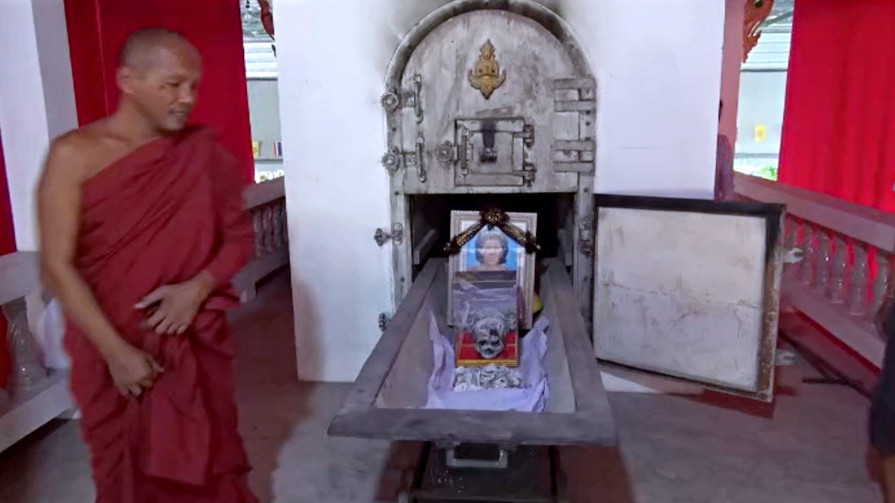 ศพแม่เฒ่าชาวหนองฉาง อุทัยธานี ถูกนำไปฌาปนกิจเข้าเตาเผา ใช้ถ่าน 4 กระสอบเหมือนศพทั่วไป เช้าเปิดเตาจะเอากระดูกไปแปรธาตุ ปรากฏว่าส่วนอื่นถูกเผาไหม้ย่อยสลายกลายเป็นเถ้าอัฐิ เหลือแต่กะโหลกตั้งอยู่ พระเผยผู้ตายเป็นคนใจบุญ ด้านคอหวยไม่พลาด นำเลขอายุ ชาตะ มรณะ ไปเสี่ยงดวง