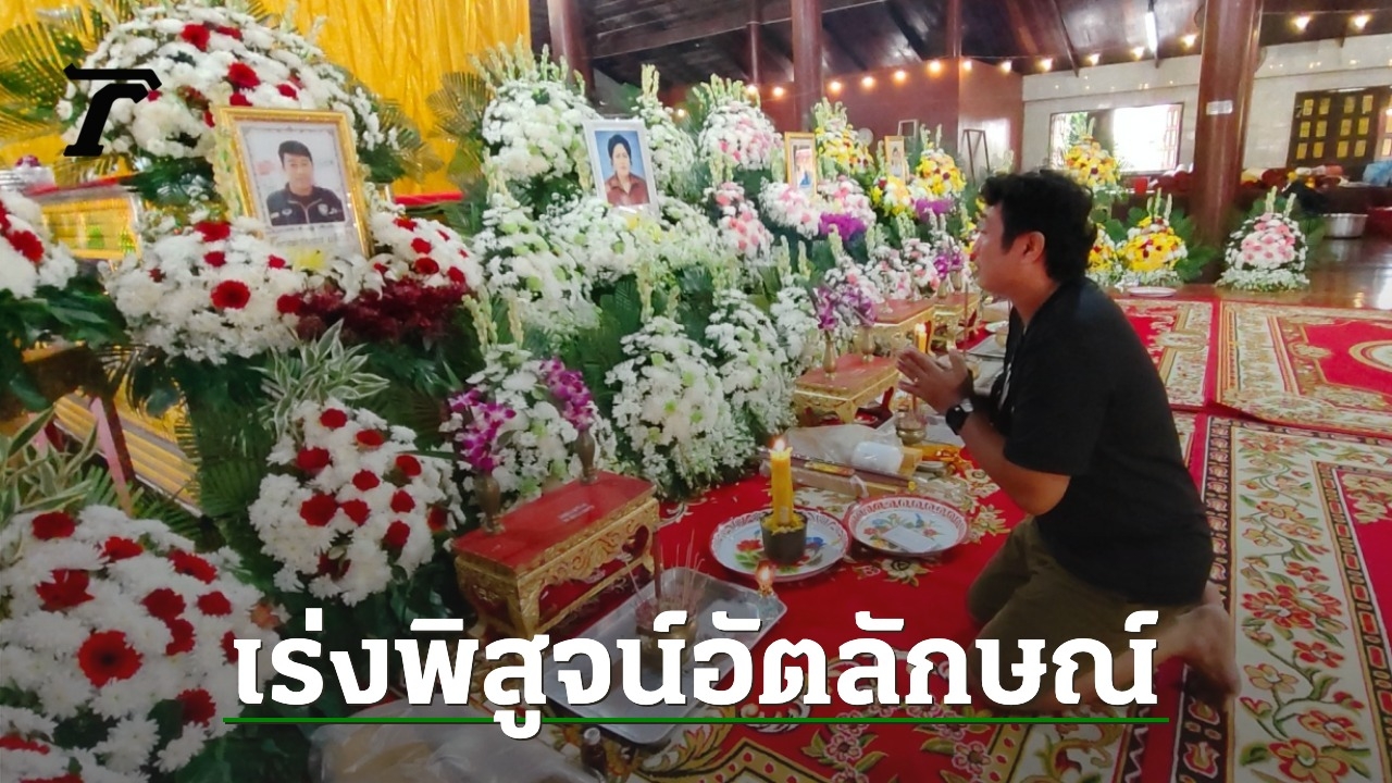 ขณะที่ญาตินางพเยาว์ บุญกล่อม นายโสพล สวยค้าข้าว นางรำไพ สวยค้าข้าวช้าง และ นายสมควร แจ้งวิถี ได้จัดพิธีตั้งบำเพ็ญกุศลศพทั้ง 4 รายที่วัดโรงช้าง โดยนายพิชิต บุญกล่อม อายุ 48 ปี ลูกชายนางพะเยา บุญกล่อม กล่าวว่า วันเกิดเหตุยังดีที่เป็นวันที่ 17 ถ้าเป็นวันที่ 16 เด็กนักเรียนจะเยอะกว่านี้ เพราะถ้าโรงเรียนปิดจะมีคนเยอะกว่านี้ จะมีลูกๆ ไปช่วยพ่อแม่ทำงาน ส่วนเรื่องเชิญวิญญาณต้องถามอีกที ร่างของแม่ตนถือว่ายังโดนไม่รุนแรง รายที่โดนรุนแรงก็จะยังยืนยันศพไม่ได้ แต่บางศพที่ยังจำไม่ได้ ไม่แน่ใจว่าจะเอาเข้ากรุงเทพฯ หรือเปล่า ซึ่งใช้เวลาตรวจ 7 วัน อย่างร่างเจ้าของโรงงานกับลูกยังจำสภาพศพไม่ได้ เพราะว่าอยู่ใกล้ และโดนแบบรุนแรงร่างแหลก เพราะเป็นคนที่อยู่ใกล้แรงระเบิดที่สุด ส่วนแม่ตนจะอยู่ปลายแรงระเบิด ร่างเลยไม่แหลกเละ ยังจำลักษณะได้
