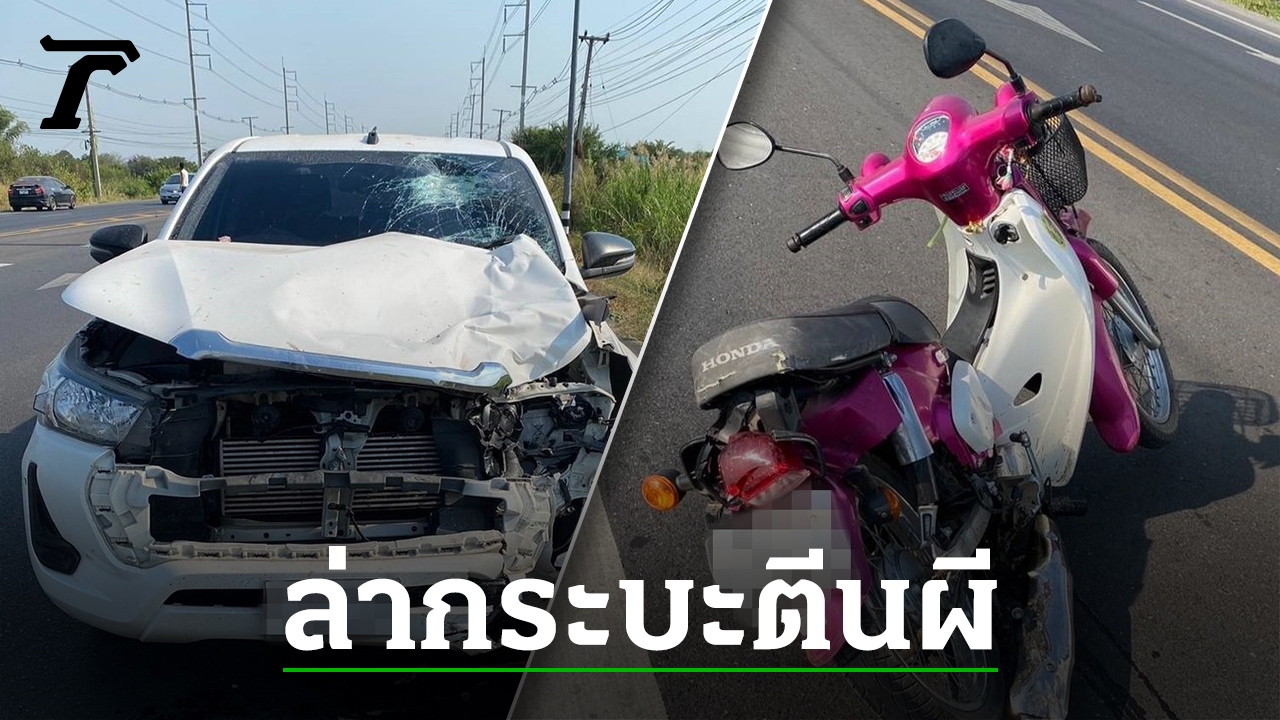 สลด น้ากับหลานขี่ จยย.กลับจากโรงพยาบาล ถูกกระบะซิ่งแซงซ้าย-แต่ไม่พ้น เสยท้ายลากไกล 50 เมตร เสียชีวิตทั้งคู่ ส่วนคนขับกระบะอาศัยช่วงชุลมุนหลบหนี