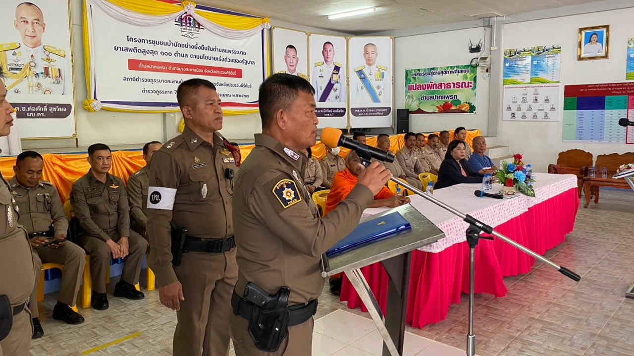 พ.ต.อ.ธฤต เรืองเดชา กล่าวว่า ตามที่ตำรวจภูธรภาค 7 ภ.จว. ประจวบคีรีขันธ์ ประกอบกับคำสั่งอำเภอบางสะพานน้อย ที่ 423/2566 ลงวันที่ 14 ธันวาคม พ.ศ. 2566 ได้มอบหมายให้ สภ.บางสะพานน้อย ดำเนินงาน "โครงการชุมชนบำบัดอย่างยั่งยืนในตำบลแพร่ระบาดยาเสพติดสูงสุด 100 ตำบล ตามนโยบายเร่งด่วนของรัฐ" โดยให้ดำเนินการแก้ไขปัญหาการแพร่ระบาดของยาเสพติดในชุมชน/หมู่บ้าน เสริมสร้างให้ชุมชนเกิดความเข้มแข็งเข้าใจและรับรู้ปัญหาพิษภัยที่เกิดขึ้นจากยาเสพติด เพื่อให้เกิดกระบวนการป้องกัน แก้ไข และการบำบัดยาเสพติด โดยการมีส่วนร่วมของคนในหมู่บ้าน/ชุมชน และเพื่อสร้างรูปแบบการดำเนินงานในหมู่บ้าน/ชุมชน ให้เข้มแข็ง ในการแก้ไขปัญหายาเสพติดอย่างยั่งยืน มีหน่วยงานบูรณาการในการขับเคลื่อน ได้แก่ ศูนย์ปฏิบัติการป้องกันและปราบปรามยาเสพติดอำเภอบางสะพานน้อย สภ.บางสะพานน้อย สาธารณสุข รพ.บางสะพานน้อย องค์การบริหารส่วนตำบล หน่วยงานราชการอื่นๆ กำนัน/ผู้ใหญ่บ้าน อสม. และคณะกรรมการหมู่บ้าน