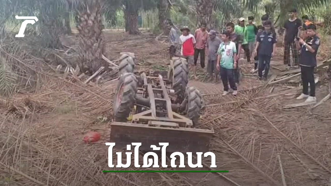 ชีวิตชาวนา ฝนตกจะไปไถนา ขับรถไถออกจากบ้านผ่านสวนปาล์ม ดินเจอน้ำฝนยุบตัว ทำรถไถพลิกคว่ำ ทับเสียชีวิต