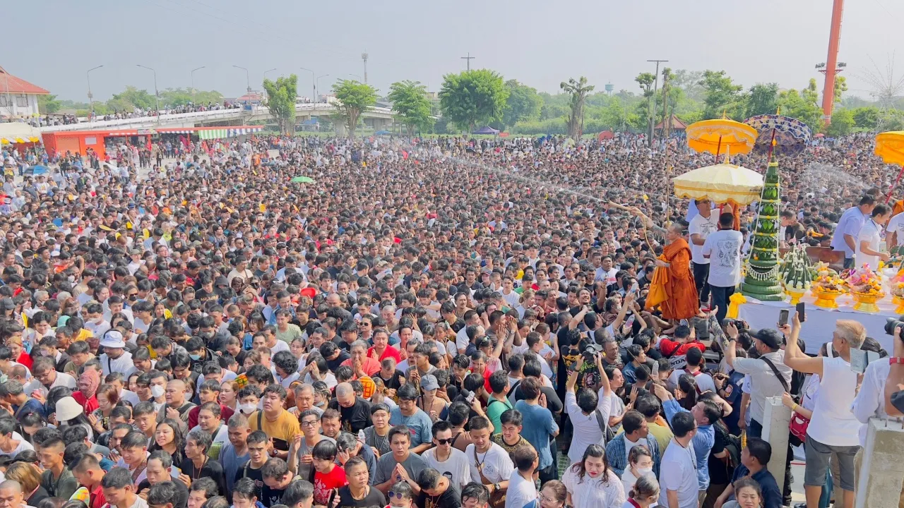 โดยที่บริเวณลานกว้างหน้าวิหารอนุสรณ์พระอุดมประชานาถหรือหลวงพ่อเปิ่นและรอบๆ วัด มีบรรดาลูกศิษย์ ทั้ง ชาย หญิง และชาวต่างชาติ นับหมื่นนั่งคอยรอพิธี ซึ่งบางคนมาจากต่างจังหวัดเดินทางมาค้างพักแรมและจองที่นั่งเข้าร่วมพิธีที่วัดตั้งแต่เมื่อวานนี้