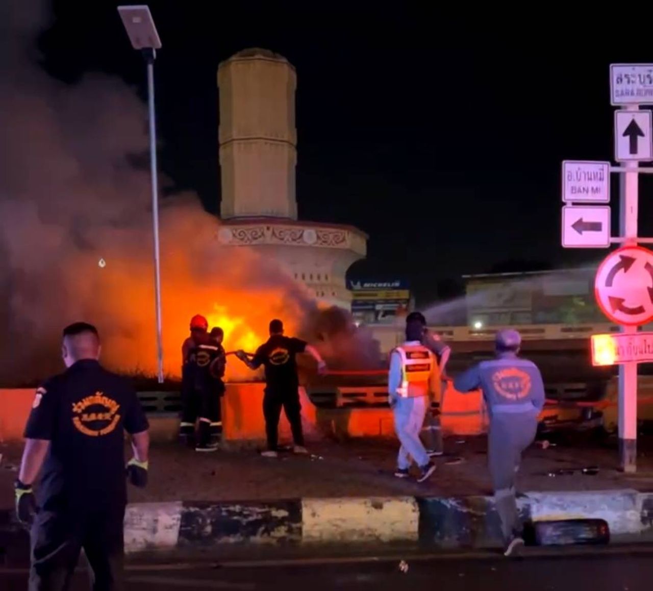 เวลา 22.30 น. วันที่ 23 เม.ย. 67 ตำรวจ สภ.เมืองลพบุรี ได้รับแจ้งว่ามีรถยนต์เก๋งพุ่งชนวงเวียนศรีสุริโยทัย (วงเวียนสระแก้ว) ต.ทะเลชุบศร อ.เมือง จ.ลพบุรี และได้เกิดเพลิงลุกไหม้รถจึงได้ประสานรถน้ำดับเพลิงเทศบาลเมืองลพบุรี และอาสาสมัครมูลนิธิร่วมกตัญญูรุดเดินทางไปยังจุดเกิดเหตุ