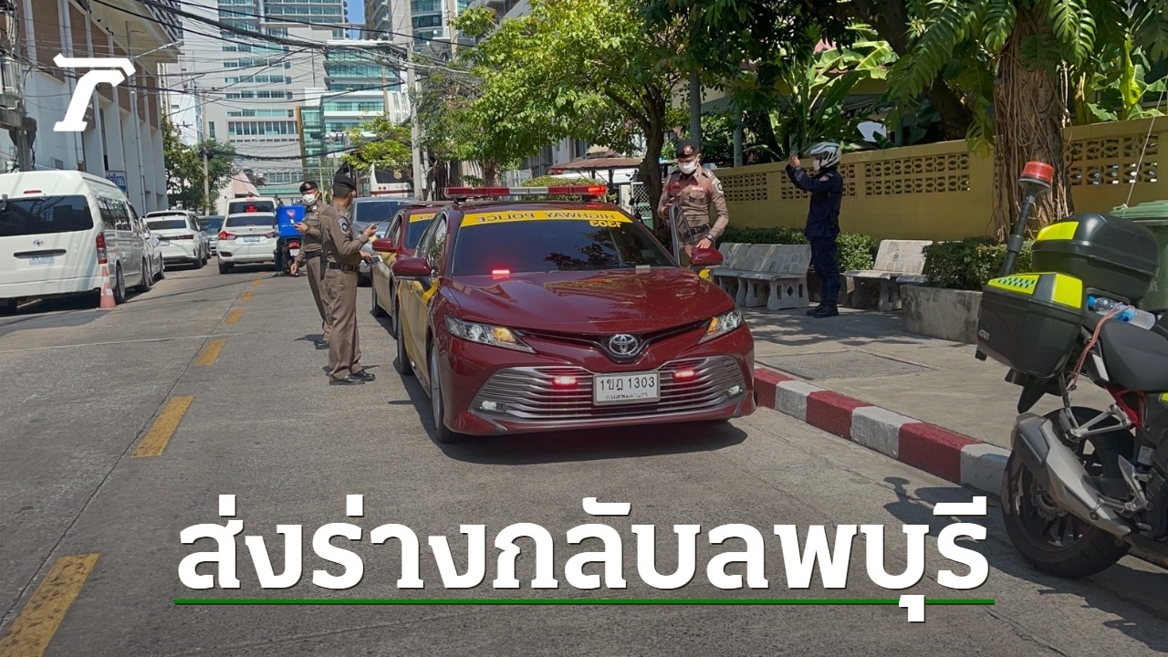 ครอบครัว พร้อมญาติๆ และผู้บังคับบัญชาในสังกัดฯ เดินทางมารับศพ "ด.ต.ปิยนันท์ สีเสื้อ" หรือ "ดาบต้าร์" ผบ.หมู่ ส.ทล.3 กก.1 บก.ทล. เหยื่อสาวตีนผีซิ่งเก๋งชนเสียชีวิต ขณะปฏิบัติหน้าที่ช่วงสงกรานต์ กลับไปทำพิธีบำเพ็ญกุศล ที่วัดสะพานอิฐ ต.ทะเลชุบศร อ.เมือง จ.ลพบุรี