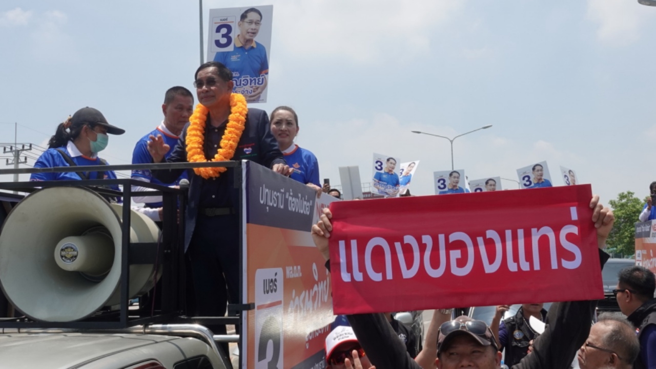 บิ๊กแจ๊ส พล.ต.ท.คำรณวิทย์ ธูปกระจ่าง อดีตนายก อบจ.ปทุมธานี ลงชิงตำแหน่งเดิมที่ตัวเองเพิ่งลาออกไป โดยมี "คุณแม่จงกล" เป็นคนพาลูกชายมาสมัครได้หมายเลข 3 กองเชียร์มีทั้งเสื้อแดงเสื้อส้มผู้พิการนั่งวีลแชร์ ชูป้าย "แดงขอแทร่"