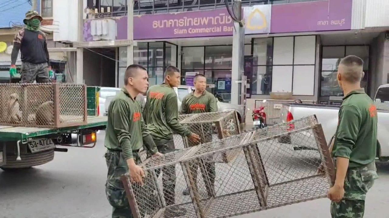 "เข้าสู่วันที่ 3" ปฏิบัติการจับลิงตึกเมืองลพบุรี ระดม จนท.จากเขตห้ามล่าสัตว์ป่าเขาประทับช้าง จ.ราชบุรี และเขตห้ามล่าสัตว์ป่าพันท้ายนรสิงห์ จ.สมุทรสาคร มาช่วยจับ รวมจับได้แล้วกว่า 200 ตัว ในจำนวนนี้มีลิงท้องแก่และลิงที่มีลูกเกาะอก 16 ตัว