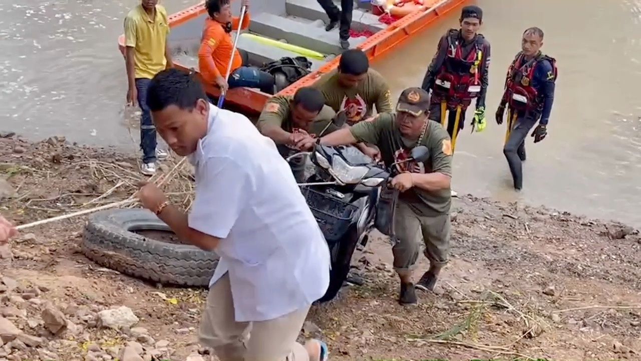 เหตุการณ์อาคารจอดรถของโรงเรียนวัดธรรมามูล อ.เมืองชัยนาท พังลงแม่น้ำเจ้าพระยา พร้อมรถ 13 คัน แพวัด กุฏิลอยอังคาร จากเหตุดินตลิ่งทรุด ล่าสุดกู้ภัยฯ นำรถ จยย.กับจักรยานขึ้นมาได้แล้ว 4 คัน ส่วนรถเก๋ง ปิกอัพ รวม 3 คัน รอเครนมายกพรุ่งนี้