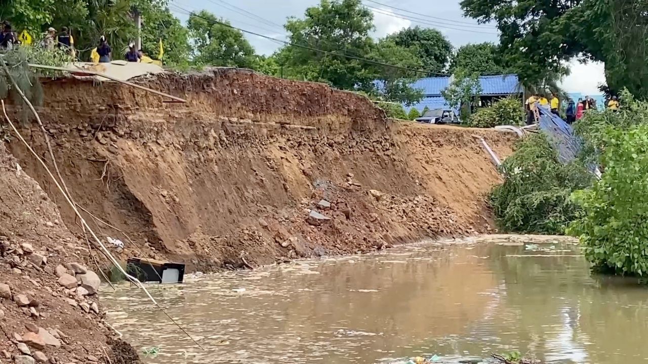 ส่วนรถที่จมลงไปเป็นรถ กระบะ 1 คัน รถเก๋ง 2 คัน รถจักรยายนต์ 5 คัน และรถจักรยานอีกประมาณ 5 คัน รวม 13 คัน โดยบริเวณจุดเกิดเหตุได้ใช้เชือกกั้นไม่ให้ใครเข้าไป และรถสัญจรไปมา เพื่อความปลอดภัย รอแขวงทางหลวงชนบทมาประเมินอีกครั้งจึงว่าสามารถสัญจรได้ตามปกติหรือไม่