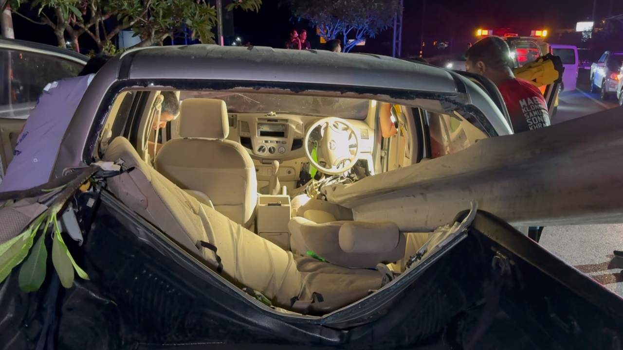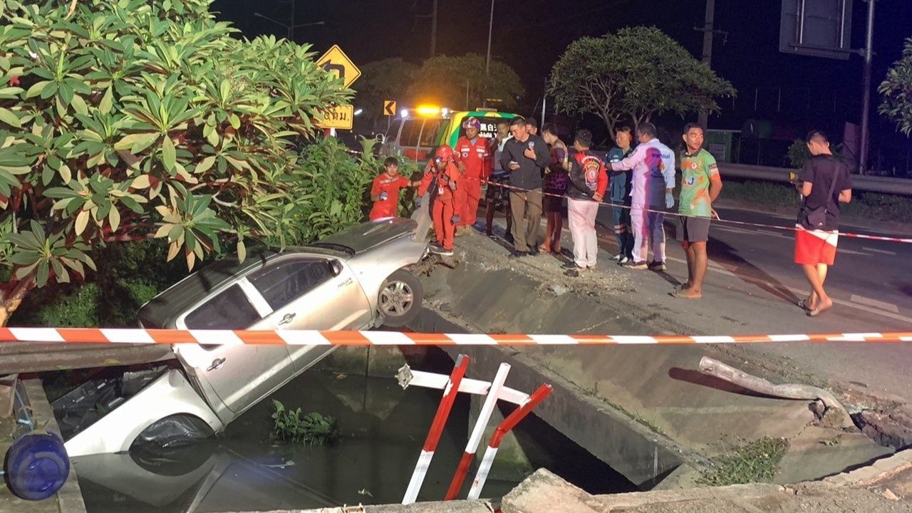 ที่เกิดเหตุพบรถยนต์กระบะโตโยต้า วีโก้ 4 ประตู สีบรอนซ์เทา ทะเบียน ศล-7839 กรุงเทพมหานคร ตกอยู่ในร่องน้ำข้างถนน มีเหล็กแผงกั้นเสียบด้านหน้ารถทะลุออกมาที่กระจกหลัง ใกล้กันประมาณ 5 เมตร บริเวณหน้าบ้านเลขที่ 10 พบศพนายณัฐชยพงศ์ พรหมจันทร์ อายุ 34 ปี ที่อยู่ตามบัตรประชาชน เลขที่ 145 ม.8 ต.ยางหัก อ.ปากท่อ จ.ราชบุรี ซึ่งเป็นคนขับนอนติดกำแพงบ้าน สภาพมีบาดแผลฉกรรจ์ที่ศีรษะ เนื่องจากกระเด็นออกมาจากรถศีรษะไปฟาดกับกำแพง แขนซ้ายหัก ขาขวาหักทั้ง 2 ท่อน บาดแผลฉกรรจ์ เศษกระดูกกระเด็นหลุดออกมา เลือดไหลนองพื้น
