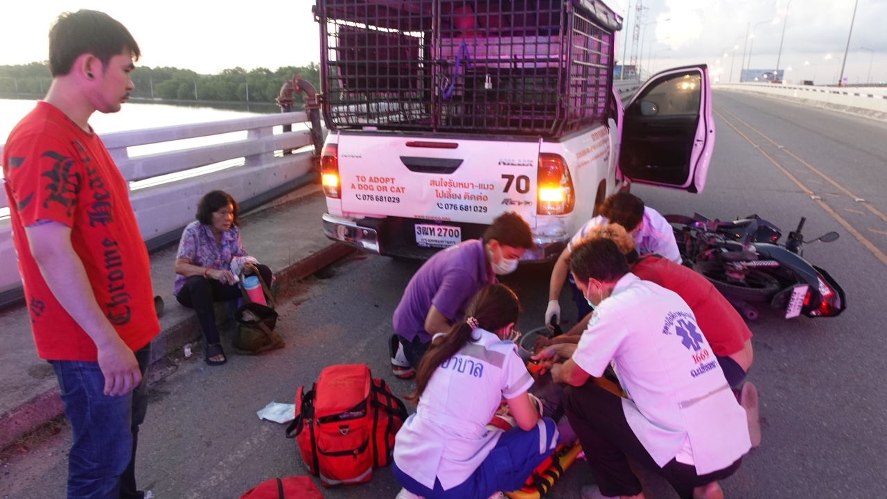 หนุ่มวัย 32 ขับรถกระบะคอกบรรทุกของ เกิดง่วง จอดนอนกลางสะพานข้ามแม่น้ำบางปะกงขวางไปเกือบ 1 เลน ก่อนมีรถจักรยานยนต์สองสามีภรรยาขี่ขึ้นสะพานมาชนท้ายเต็มแรงจนสามีเจ็บสาหัส คนขับกระบะบอกเลือกนอนช่วงทางขึ้นสะพาน เพื่อที่ผู้ขับขี่รถขึ้นมาจะได้มองเห็น