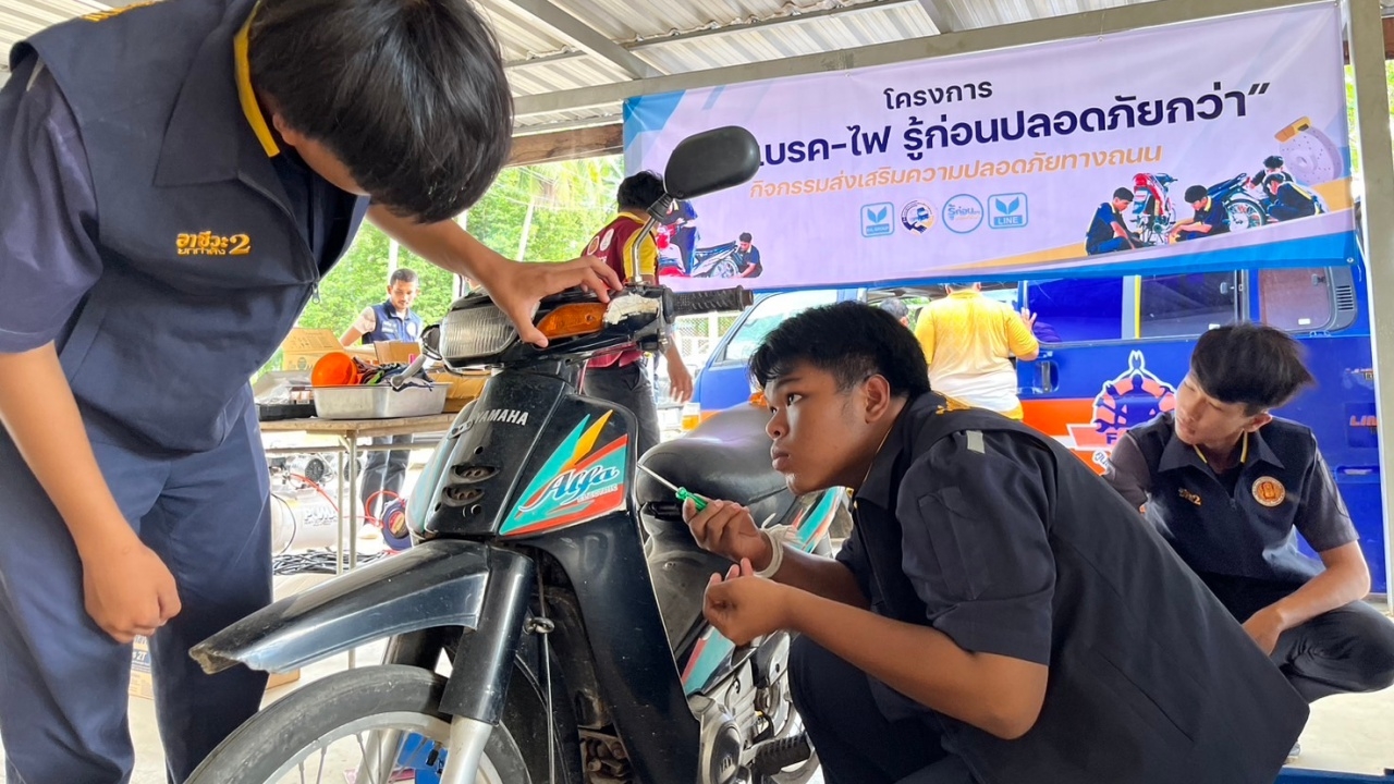 วันที่ 18 มิ.ย. 67 นายสุทิน ประเสริฐศักดิ์ นายอำเภอบางสะพาน จ.ประจวบคีรีขันธ์ เป็นประธานเปิดโครงการ “เช็ก เบรก-ไฟ รู้ก่อนปลอดภัยกว่า” โดยมีผู้บริหารเอสวีแอล กรุ๊ป (SVL Group) นายอุดม สดใส กรรมการผู้จัดการ บริษัท ไลน์ ทรานสปอร์ต จำกัด และในฐานะประธานชมรมผู้ประกอบการขนส่งบางสะพาน นำทีมพนักงานเข้าร่วมกิจกรรม พร้อมส่งมอบชุดอุปกรณ์อะไหล่ สำหรับซ่อมเบรก-ไฟ ให้กับชุมชน ด้วยความร่วมมือจากคณะอาจารย์ และนักศึกษา ชั้น ปวช. ปี 2-3 สาขาวิชาช่างยนต์ จากวิทยาลัยการอาชีพบางสะพาน ทีมอาสาออกหน่วยให้บริการตรวจสภาพรถจักรยานยนต์ เช็ก เบรก-ไฟ และบริการเปลี่ยนอะไหล่ให้ชุมชนฟรี พร้อมได้รับความร่วมมืออย่างดียิ่งจากผู้นำ และคณะกรรมการชุมชน มีผู้เข้าร่วมโครงการฯ กว่า 80 คน พิธีเปิดและกิจกรรมจัดขึ้น ณ ศาลาอเนกประสงค์ หมู่ 8 บ้านล่าง ต.แม่ราพึง อ.บางสะพาน จ.ประจวบฯ มีผู้สนใจนำรถมาเข้าร่วมรับบริการกว่า 40 คัน