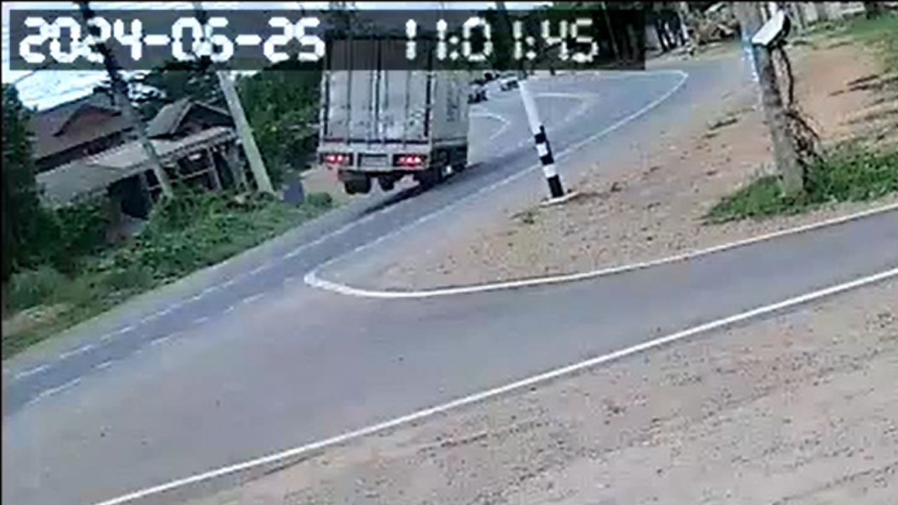 ที่เกิดเหตุพบรถบรรทุกหกล้อตู้ทึบ ยี่ห้อ ฮีโน่ สีขาว หมายเลขทะเบียน 83-5959 ราชบุรี สภาพพลิกตะแคงอยู่ริมถนนพังยับเยิน ตรวจสอบภายในซากรถพบผู้เสียชีวิตเป็นชาย 2 ราย ทราบชื่อ นายคมสันต์ แก้วพวงมะณี อายุ 39 ปี เป็นคนขับ นายลิน นี ทุย ชาวเมียนมา อายุ 20 ปี ส่วนที่ซุ้มล้อพบศพชายอีก 1 ราย ไม่ทราบชื่อ เป็นชาวเมียนมา ใกล้กันพบเสาไฟฟ้าส่องสว่างถูกชนขาดกระเด็น
