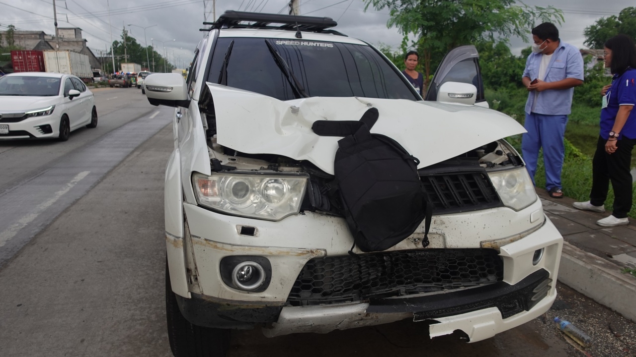 ห่างไปเล็กน้อยพบ รถยนต์อเนกประสงค์ มิตซูบิชิ ปาเจโร สีขาว ทะเบียน 8กง 5525 กรุงเทพมหานคร จอดอยู่ ด้านหน้าพังยุบ โดยพบกระเป๋าสะพายนักเรียนสีดำติดคาอยู่หน้ารถ มี นายณรงค์ศักดิ์ แสวงมิ้ม อายุ 44 ปี เป็นคนขับ ได้รับบาดเจ็บที่หน้าอกเนื่องจากถูกถุงลมนิรภัยกระแทก