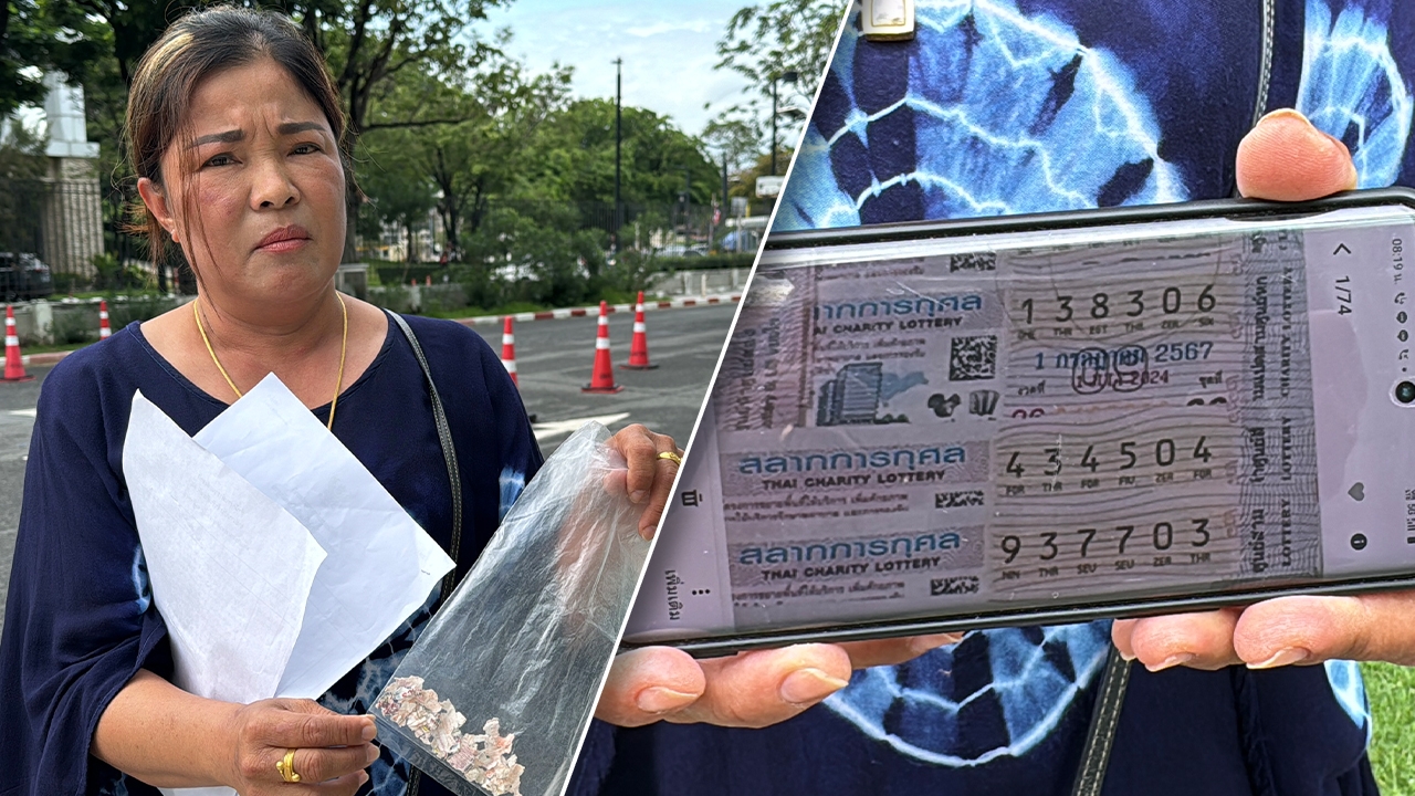 เวลา 08.00 น. วันที่ 5 ก.ค. 67 ที่สำนักงานสลากกินแบ่งรัฐบาล จ.นนทบุรี นางนาราภัทร พรมมะกุล อายุ 50 ปี ลูกสาว "คุณตาอ้าย" อายุ 74 ปี เจ้าของลอตเตอรี่รางวัลข้างเคียงรางวัลที่ 1 งวดวันที่ 1 ก.ค. 2567 หลังเข้าแจ้งความสภ.เสริมงาม จ.ลำปาง ได้เดินทางมาพร้อมกับนางนอรา แม่ค้าลอตเตอรี่ ที่นำลอตเตอรี่ไปขายให้กับตาอ้าย เพื่อติดต่อเจ้าหน้าที่กองสลากฯ ในการทำเรื่องขออายัด ลอตเตอรี่ หมายเลข 434504 งวดที่ 26 ชุดที่ 09 จำนวน 1 ใบ ที่ถูกขโมยไป