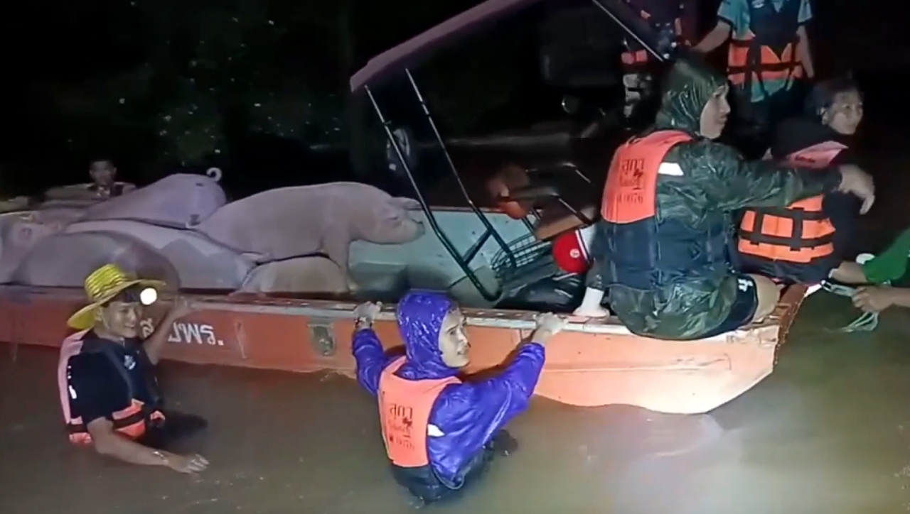 เจ้าหน้าที่ทหารจากปราจีนบุรี ปภ. อาสาหน่วยกู้ภัยมูลนิธิสัจจพุทธธรรมแห่งประเทศไทย (กบินทร์บุรี) นำเรือท้องแบนเข้าช่วยเหลือชาวบ้านที่ติดอยู่ภายในร่วม 200 หลังคาเรือน และถูกตัดขาด ออกมาไว้ด้านนอก ทั้งเด็กเล็ก สตรี ผู้สูงอายุ รวมทั้งนำหมูออกจากฟาร์ม อย่างยากลำบาก เพราะกระแสน้ำเพิ่มขึ้นอย่างต่อเนื่อง บางพื้นที่ระดับสูงเกือบ 2 เมตร ทำให้การช่วยเหลือประชาชนเป็นอย่างยากลำบาก เพราะเป็นเวลามืดค่ำ บ้างพื้นที่กระแสไฟฟ้ายังไม่ตัดยากแก่การช่วยเหลือ เกรงว่าจะเกิดอันตรายได้ ล่าสุดระดับน้ำยังเพิ่มขี้นอย่างต่อเนื่อง เพราะช่วงค่ำฝนตกลงนานนับชั่วโมง