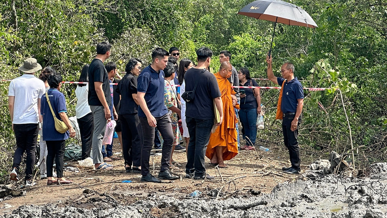 ครอบครัวของ ร.อ.อนุชา เดชอภิรักษ์ชน นักบิน และญาติของนายพรศักดิ์ โตทับ ผู้ช่วยนักบิน นิมนต์พระเชิญวิญญาณบริเวณจุดเครื่องบินเล็ก เที่ยวบินที่ TFT209 แบบเครื่อง Cessna caravan C208 ทะเบียน HSSKR ของบริษัท ไทย ฟลายอิ้ง เซอร์วิส จำกัด ตกหล่มโคลนตายยกลำ 9 ศพ บริเวณป่าชายเลนหลังวัดเขาดิน หมู่ 6 ต.เขาดิน อ.บางปะกง จ.ฉะเชิงเทรา.