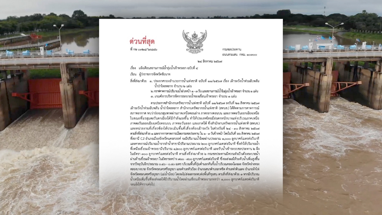 วันที่ 25 สิงหาคม 2567 ศูนย์ปฏิบัติการน้ำอัจฉริยะ (SWOC) กรมชลประทาน เปิดเผยถึงสถานการณ์น้ำในแม่น้ำเจ้าพระยาปัจจุบัน (25 ส.ค. 67 เวลา 06.00 น.) ว่า ที่สถานีวัดน้ำ C.2 อ.เมือง จ.นครสวรรค์ มีปริมาณน้ำไหลผ่าน 944 ลบ.ม./วินาที แนวโน้มเพิ่มขึ้น ทำให้ระดับน้ำเหนือเขื่อนเจ้าพระยายกตัวสูงขึ้นตามไปด้วย กรมชลประทานได้รับน้ำเข้าระบบชลประทานทั้ง 2 ฝั่งของแม่น้ำเจ้าพระยาในอัตราที่เหมาะสม พร้อมปรับการระบายน้ำผ่านเขื่อนเจ้าพระยาในอัตรา 649 ลบ.ม./วินาที คาดการณ์ว่าปริมาณน้ำไหลผ่านเขื่อนเจ้าพระยาจะมีแนวโน้มเพิ่มขึ้น จึงได้ทยอยปรับเพิ่มการระบายน้ำให้อยู่ในเกณฑ์ประมาณ 700-900 ลบ.ม./วินาที ซึ่งสอดคล้องกับสถานการณ์น้ำจากทางตอนบนและฝนที่ตกในระยะนี้ โดยจะทำให้ระดับน้ำท้ายเขื่อนเจ้าพระยา บริเวณพื้นที่ลุ่มต่ำนอกคันกั้นน้ำบริเวณคลองโผงเผง จ.อ่างทอง คลองบางบาล จ.พระนครศรีอยุธยา และ ต.หัวเวียง อ.เสนา ต.ลาดชิด ต.ท่าดินแดง อ.ผักไห่ จ.พระนครศรีอยุธยา (แม่น้ำน้อย) เพิ่มสูงขึ้นจากปัจจุบันอีกประมาณ 40-80 เซนติเมตร โดยระดับน้ำที่เพิ่มสูงขึ้นดังกล่าวยังคงอยู่ในตลิ่งและไม่ส่งผลกระทบต่อพื้นที่