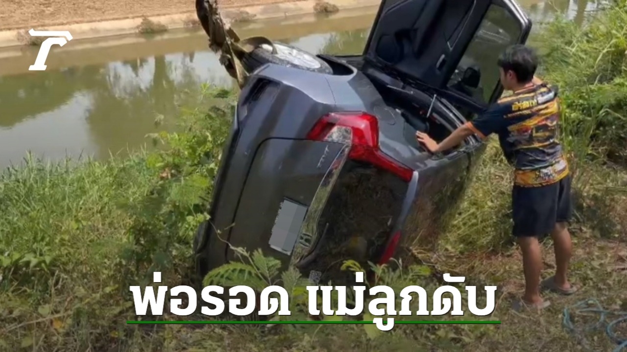 เจ้าหน้าที่ สธ. ขับเก๋งเสียหลักตกคลอง ระหว่างเดินทางไปประชุมที่กาญจนบุรี ตัวเองถูกพลเมืองดีช่วยรอดชีวิต ขณะที่เมีย และลูกวัย 6 เดือนจมดับ เศร้าเห็นศพ จับมือร่ำไห้