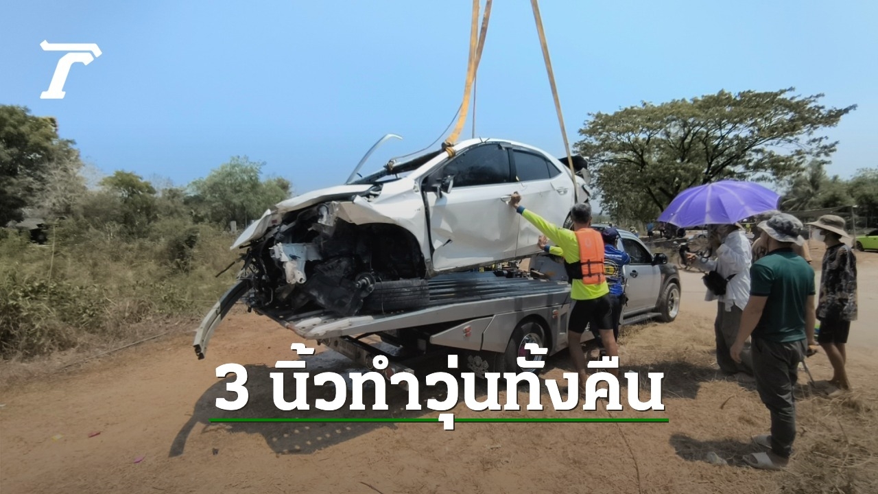 หนุ่มขับเก๋งกลับจากสังสรรค์ ชนขอบสะพานก่อนพุ่งตกคลอง เจ้าหน้าที่ช่วยขึ้นมาได้ ถามมากี่คน ชู 3 นิ้วตอบ ทำวุ่นต้องหาอีก 2 คนอยู่นาน สุดท้ายคาดว่ามาคนเดียว