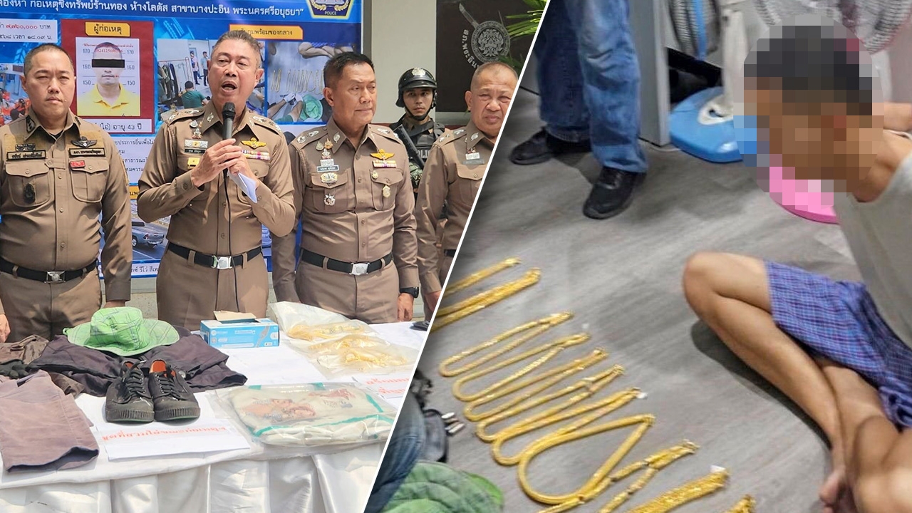 จากเหตุการณ์คนร้ายบุกเดี่ยวจี้ชิงทรัพย์ร้านทองเยาวราชเอเชีย ตั้งอยู่ในห้างโลตัส สาขาบางปะอิน ริมถนนสายเอเชียขาออก กม.ที่ 2 ต.เชียงรากน้อย อ.บางปะอิน จ.พระนครศรีอยุธยา เมื่อช่วงเย็นวันที่ 23 มี.ค. โดยคนร้ายใส่หมวกสีเขียวแบบมีผ้ากันแดดปิดบังใบหน้า เสื้อแจ็กเกตสีดำ กางเกงขายาวสีเทา รองเท้าผ้าใบสีดำ เดินปรี่เข้าไปในร้าน ทำท่าจะชักปืนออกจากเอวข่มขู่พนักงานร้านให้หยิบทองรูปพรรณที่โชว์อยู่ในตู้ เป็นสร้อยคอน้ำหนัก 20 บาท 3 เส้น สร้อยคอน้ำหนัก 15 บาท 2 เส้น และสร้อยคอหนัก 10 บาท 7 เส้น รวมทั้งหมด 12 เส้น น้ำหนักรวม 160 บาท มูลค่าประมาณ 7.8 ล้านบาท ใส่ถุงผ้าที่เตรียมมาแล้วเดินออกจากห้างหลบหนีไปอย่างใจเย็น