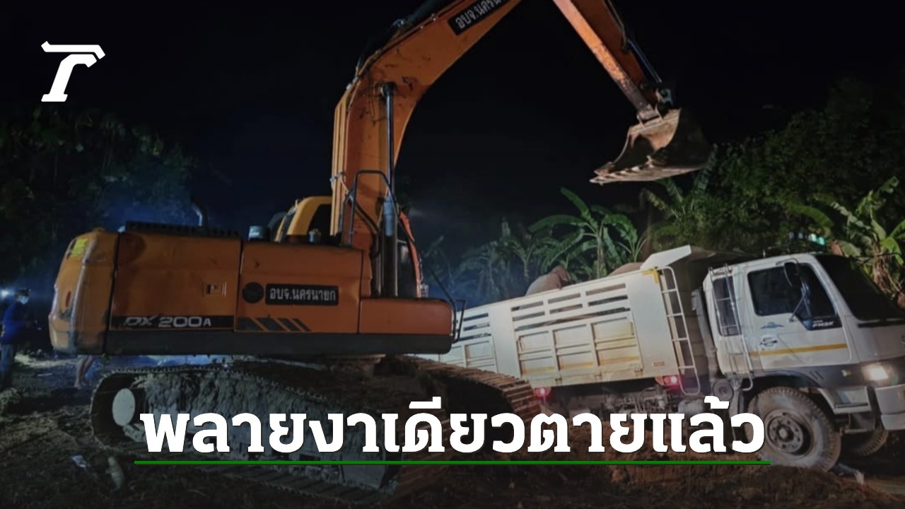 ต่อมาทาง น.ส.นิดา ขนายงาม นายก อบจ.นครนายก ได้รับการประสานจาก นายชุมพลภัทร์ นายก อบต.สาริกา ได้ให้การสนับสนุนรถแบ็กโฮและรถ 10 ล้อ เพื่อเคลื่อนย้าย “พลายงาเดียว” ไปยังหน่วยพิทักษ์อุทยานแห่งชาติเขาใหญ่ ขญ.13 เพื่อให้ทีมสัตวแพทย์ของกรมอุทยานทำการผ่าซากเพื่อทำการชันสูตรหาสาเหตุการตาย และฝัง “พลายงาเดียว” ไว้ที่นั่น