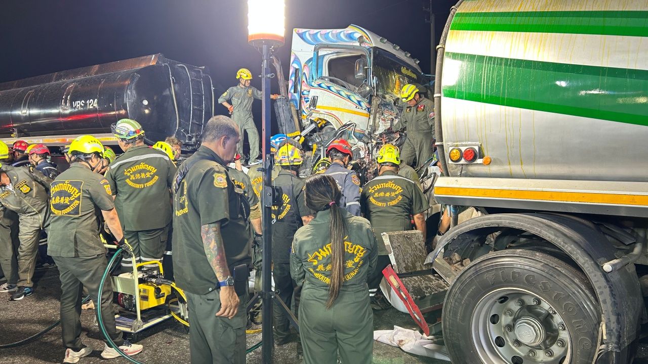 เมื่อเวลา 22.30 น. วันที่ 24 เม.ย. 68 ศูนย์วิทยุพระนคร ได้รายงานเกิดอุบัติเหตุรถบรรทุกพ่วง 18 ล้อ ชนท้ายรถยนต์เก๋ง และดันไปอัดก๊อปปี้เสยท้ายรถบรรทุกสิบล้อ มีผู้บาดเจ็บและเสียชีวิตจำนวนหลายราย เหตุเกิดบนถนนมอเตอร์เวย์สาย 7 ช่วงกิโลเมตรที่ 23+300 ขาออกมุ่งหน้า จ.ชลบุรี ต.ศีรษะจรเข้น้อย อ.บางเสาธง จ.สมุทรปราการ หลังรับแจ้ง จึงประสานเจ้าหน้าที่ตำรวจทางหลวง 1 กองกำกับการ 8 และอาสาสมัครมูลนิธิร่วมกตัญญูฯ จำนวนมากเข้าให้การช่วยเหลือ