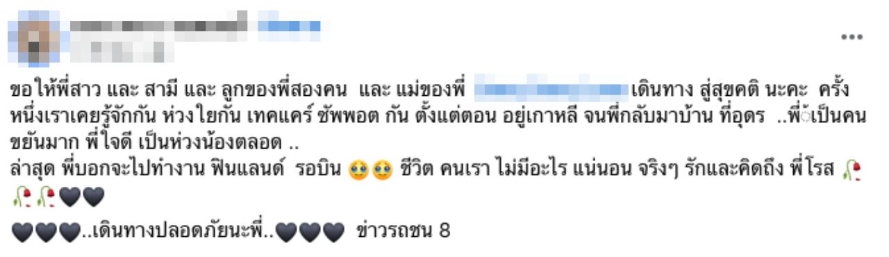นอกจากนี้ หลังเกิดเหตุการณ์ ญาติผู้เสียชีวิต และเพื่อนๆ ได้โพสต์ข้อความแสดงความอาลัยให้กับการจากไปของผู้เสียชีวิตในครั้งนี้ด้วย
