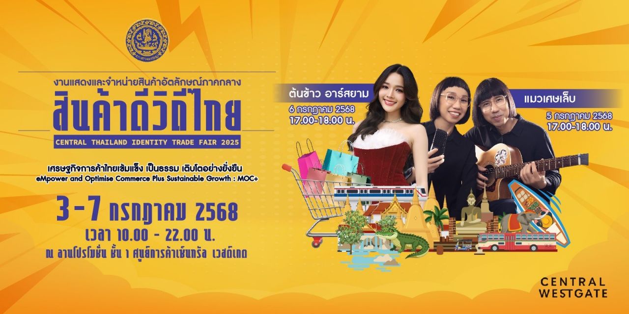 ทั้งนี้ สำนักงานพาณิชย์จังหวัดภาคกลางทั้ง 17 จังหวัดจึงขอเชิญชวนประชาชนที่สนใจร่วมงานใหญ่แห่งปี งานแสดงและจำหน่ายสินค้าอัตลักษณ์ภาคกลาง "สินค้าดีวิถีไทย" เศรษฐกิจการค้าไทยเข้มแข็ง เป็นธรรม เติบโตอย่างยั่งยืน ในวันที่ 3-7 ก.ค. 2568 ณ ลานโปรโมชั่น ชั้น 1 ศูนย์การค้าเซ็นทรัลเวสต์เกต