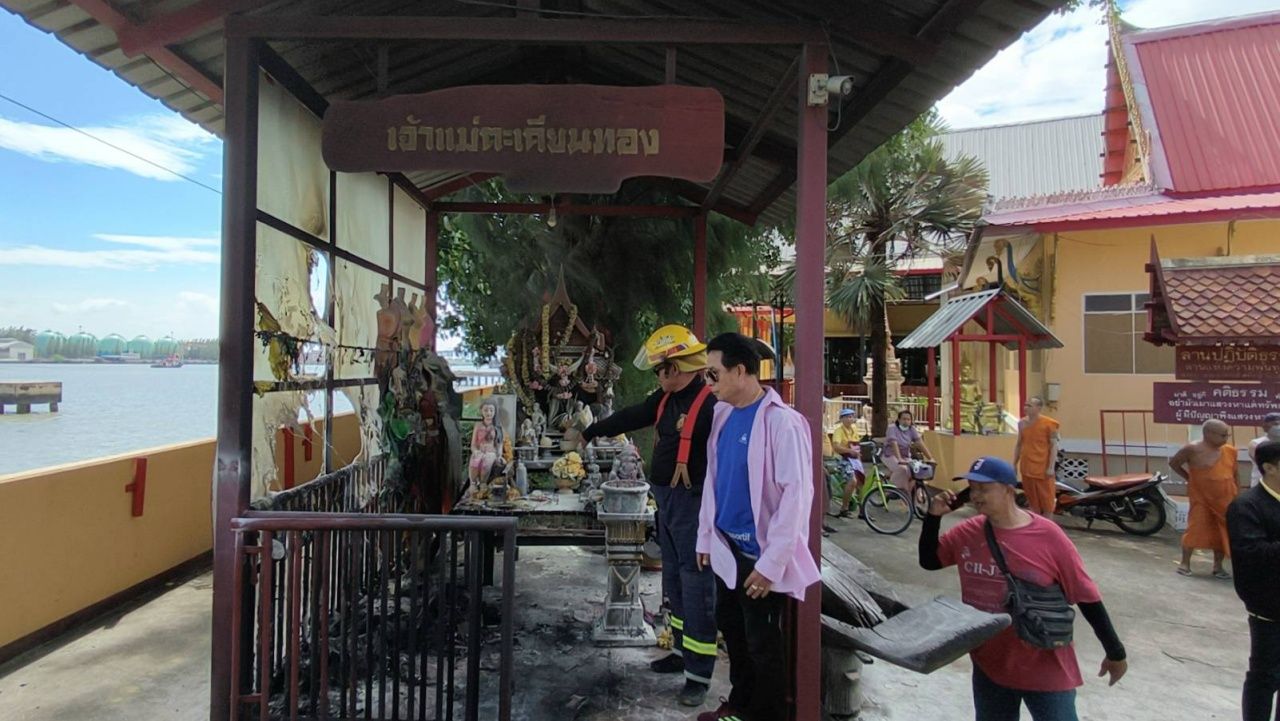 ที่เกิดเหตุเป็นศาลเจ้าแม่ตะเคียนทอง โครงสร้างเหล็ก หลังคากระเบื้อง กว้างประมาณ 3X3 เมตร สูง 4 เมตร ภายในศาลมีแท่นกราบไหว้สักการะบูชา หุ่นผู้หญิงใส่ชุดไทย ชุดไทย 4 ชุด และด้านหน้าศาลมีเรือไม้ตะเคียนทอง ยาว 3 เมตร กว้าง 1 เมตร ตั้งอยู่ โดยไฟได้ลุกไหม้หุ่นและชุดไทยที่แขวนไว้ภายในศาลได้รับความเสียหาย โชคดีที่ชาวบ้านเห็นก่อน เลยเข้าไปช่วยดับได้ทัน โดยชาวบ้านได้ช่วยกันจับ น.ส.บี (นามสมมติ) อายุ 34 ปี ผู้ก่อเหตุ เอาไว้ได้และแจ้งเจ้าหน้าที่มาตรวจสอบ