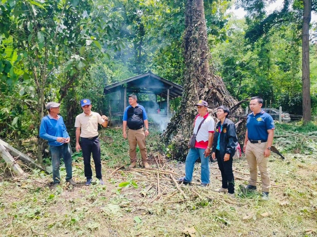 จากนั้นได้พาไปดูจุดที่เผา เป็นต้นมะพร้าวสูงประมาณ 5 เมตร พบยังมีร่องรอยการเผาและควันไฟ โดยเล่าว่าเมื่อวานตนได้มาตัดหญ้าในสวน พบว่ามีต้นมะพร้าวยืนต้นตาย มีเถาวัลย์ปกคลุมหนาทึบ ตนพยายามดึงลงมาแต่ก็ดึงไม่ได้ จึงได้ใช้ไฟเผา ปรากฏว่าไฟได้ลุกโหมขึ้นไปบนยอดมะพร้าว กลุ่มควันพวยพุ่งขึ้นไปบนท้องฟ้า ประมาณ 5 นาที ไฟจึงสงบและกลุ่มควันก็ได้จางหายไป ตอนนั้นตนก็ไม่รู้สึกอะไร แต่เมื่อเจ้าหน้าที่ให้ดูรูปภาพก็รู้สึกตกใจมากเพราะกลุ่มควันได้ขึ้นสูงมาก