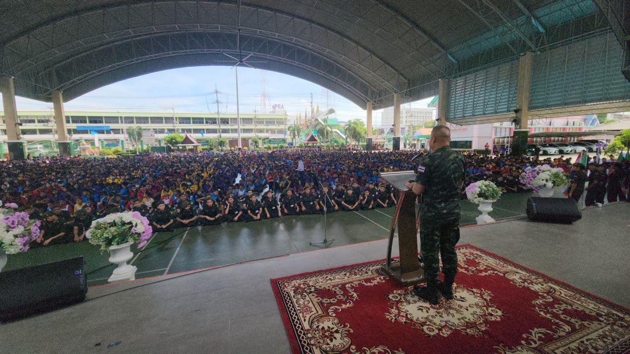 วันที่ 3 ก.ย. 68 ที่โดมอเนกประสงค์ โรงเรียนปทุมวิไล อ.เมือง จ.ปทุมธานี พลโท บุญสิน พาดกลาง หรือ บิ๊กกุ้ง แม่ทัพภาคที่ 2 เดินทางไปบรรยายปาฐกถาพิเศษ เรื่อง รักชาติ แผ่นดินไทย จิตวิญญาณ และหน้าที่พลเมือง โดยมี คณะผู้บริหารสำนักงานเขตพื้นที่การศึกษามัธยมศึกษาปทุมธานี ผู้อำนวยการโรงเรียนต่างๆ คณะครู บุคลากรทางการศึกษา นักเรียนโรงเรียนปทุมวิไล และ นักเรียนโรงเรียนข้างเคียงเข้าร่วมรับฟังกว่า 4,000 คน