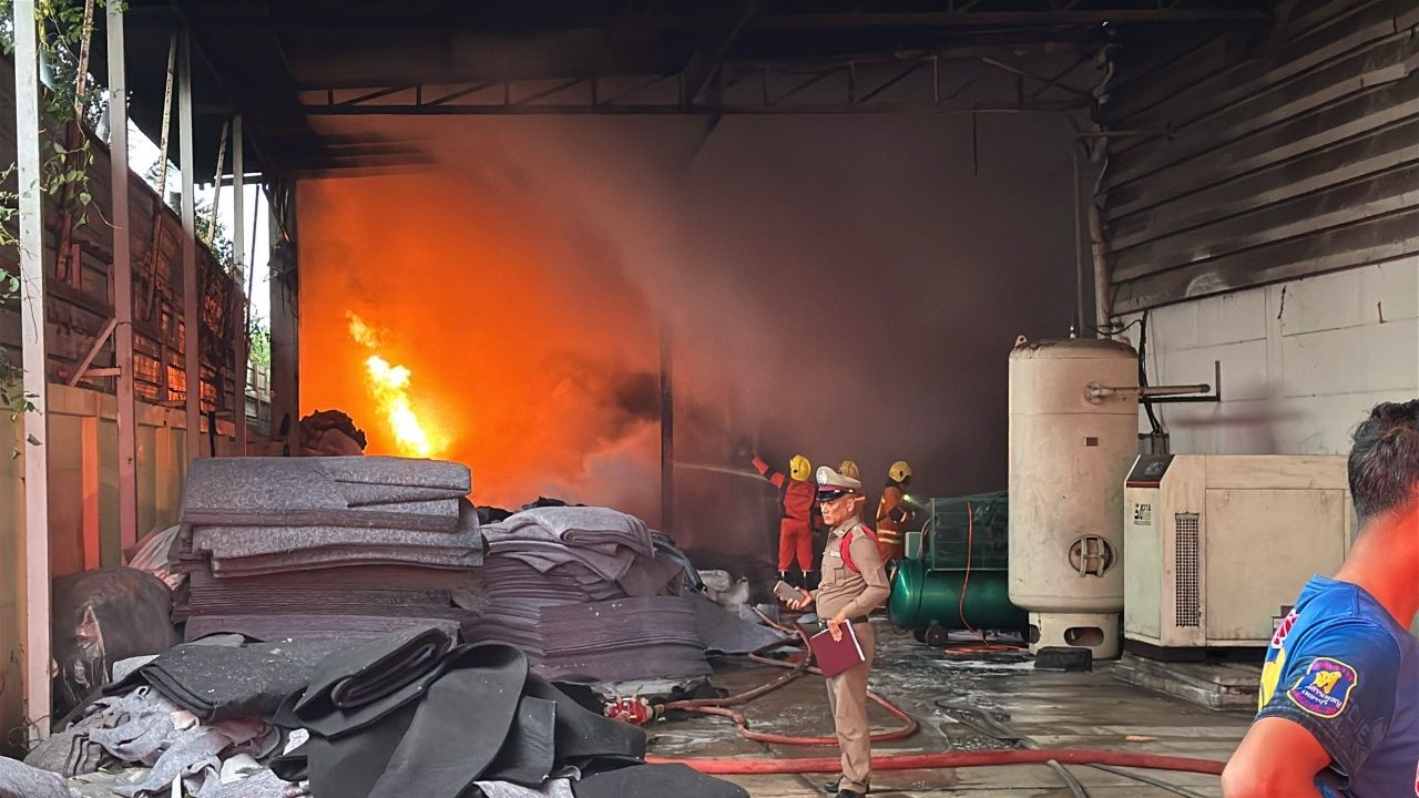 ที่เกิดเหตุพบเพลิงกำลังลุกไหม้ ภายในอาคารผลิตและเก็บวัตถุดิบที่เป็นใยสังเคราะห์ ซึ่งเป็นเชื้อเพลิงอย่างดีทำให้เพลิงได้ลุกไหม้อย่างรวดเร็วและรุนแรงเป็นวงกว้าง โดยเจ้าหน้าที่ได้ระดมกำลังรถดับเพลิงฉีดสกัดเข้าไปที่บริเวณต้นเพลิง ซึ่งเป็นไลน์ผลิตและเป็นเครื่องจักรบางส่วนที่ใช้ในการผลิตฟูกที่นอน ใช้เวลากว่า 1 ชั่วโมง จึงสามารถควบคุมเพลิงไว้ได้ในวงจำกัด แต่ก็ยังต้องฉีดน้ำหล่อเลี้ยงไว้ตลอดเนื่องจากพื้นที่ยังมีความร้อนสูง และอาจเกิดเพลิงลุกไหม้ขึ้นมาได้อีกตลอดเวลา