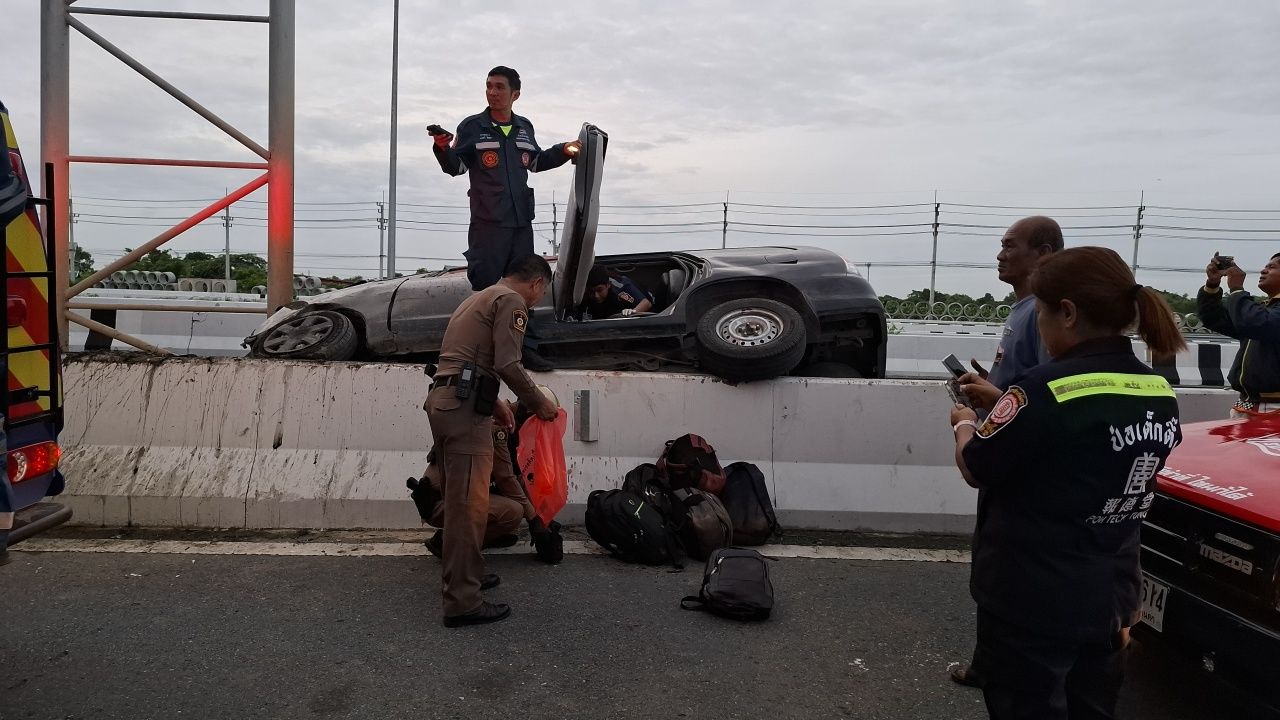 เมื่อเวลา 05.10 น. วันที่ 22 ก.ย. 68 พ.ต.ท.สุธน จิตตภูมิภักดี สว.(สอบสวน) สภ.เมืองปทุมธานี ได้รับแจ้งจากพลเมืองดีว่า มีอุบัติเหตุรถเอสยูวี ปีนเกาะกลางชนป้ายบอกทาง ทำให้มีผู้เสียชีวิตติดภายในและบาดเจ็บจำนวนมาก บริเวณถนนราชพฤกษ์ตัดใหม่ (346) ต.บ้านฉาง อ.เมือง จ.ปทุมธานี หลังรับแจ้งจึงพร้อมกับเจ้าหน้าที่ตำรวจจราจรและอาสาสมัครมูลนิธิป่อเต็กตึ๊ง นำอุปกรณ์เครื่องตัดถ่าง พร้อมประสานไปยังแพทย์จากสถาบันนิติวิทยาศาสตร์กระทรวงยุติธรรม ไปตรวจสอบ
