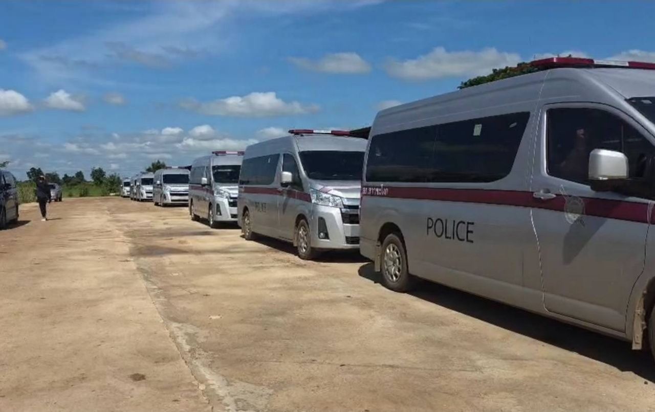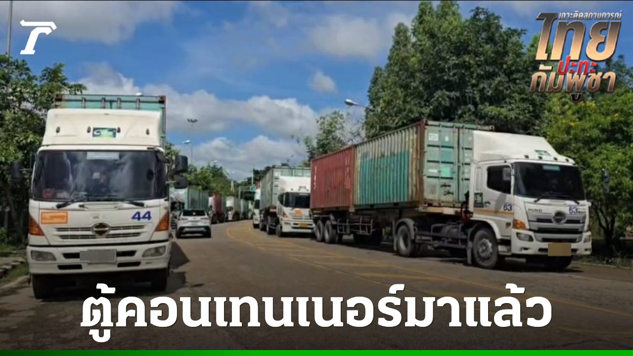 ขบวนรถบรรทุก นำตู้คอนเทนเนอร์มาถึงบ้านหนองจาน จ.สระแก้ว ด้าน "กัน จอมพลัง" มั่นใจความแข็งแรง ด้านเจ้าหน้าที่จัดกำลังตรวจตรา สังเกตการณ์ พร้อมรับมือเหตุฉุกเฉิน